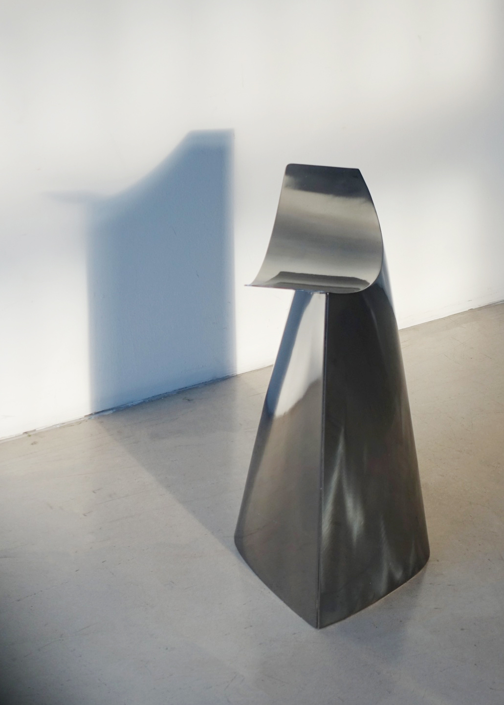 LOFT is a result of smooth surface bending in monolithic form but surprisingly light weighted. Intitally was an idea of three flat sheets, combining to create a collasapble volume. It then developed into a solid object and has a concept of fascination of light and colour, reflection and contrast, flat surfaces and blown up volume. This object shows a world of being different and a world familiar at the same time.